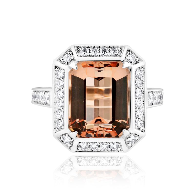 Кольцо из белого золота с морганитом 9.11 ct и бриллиантами