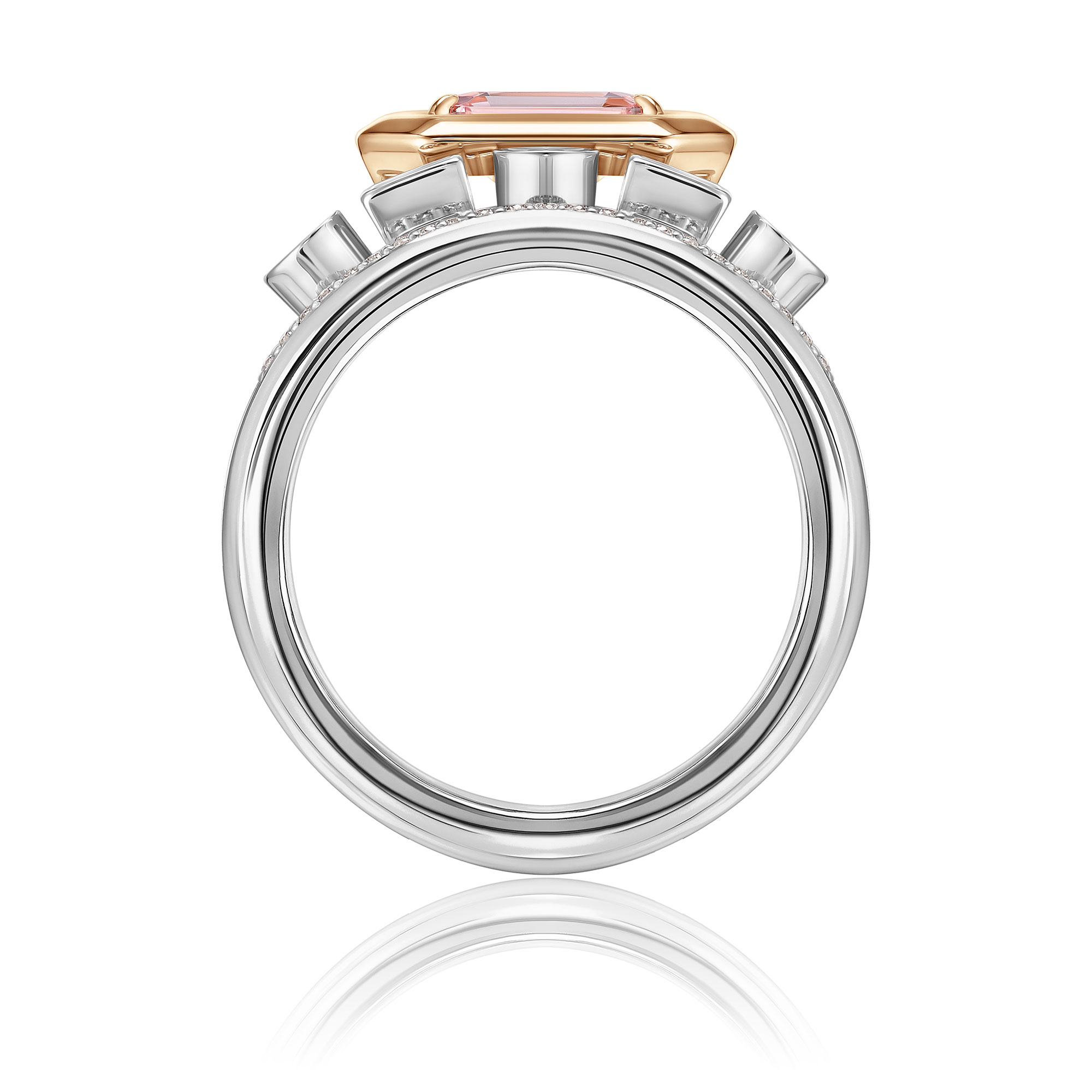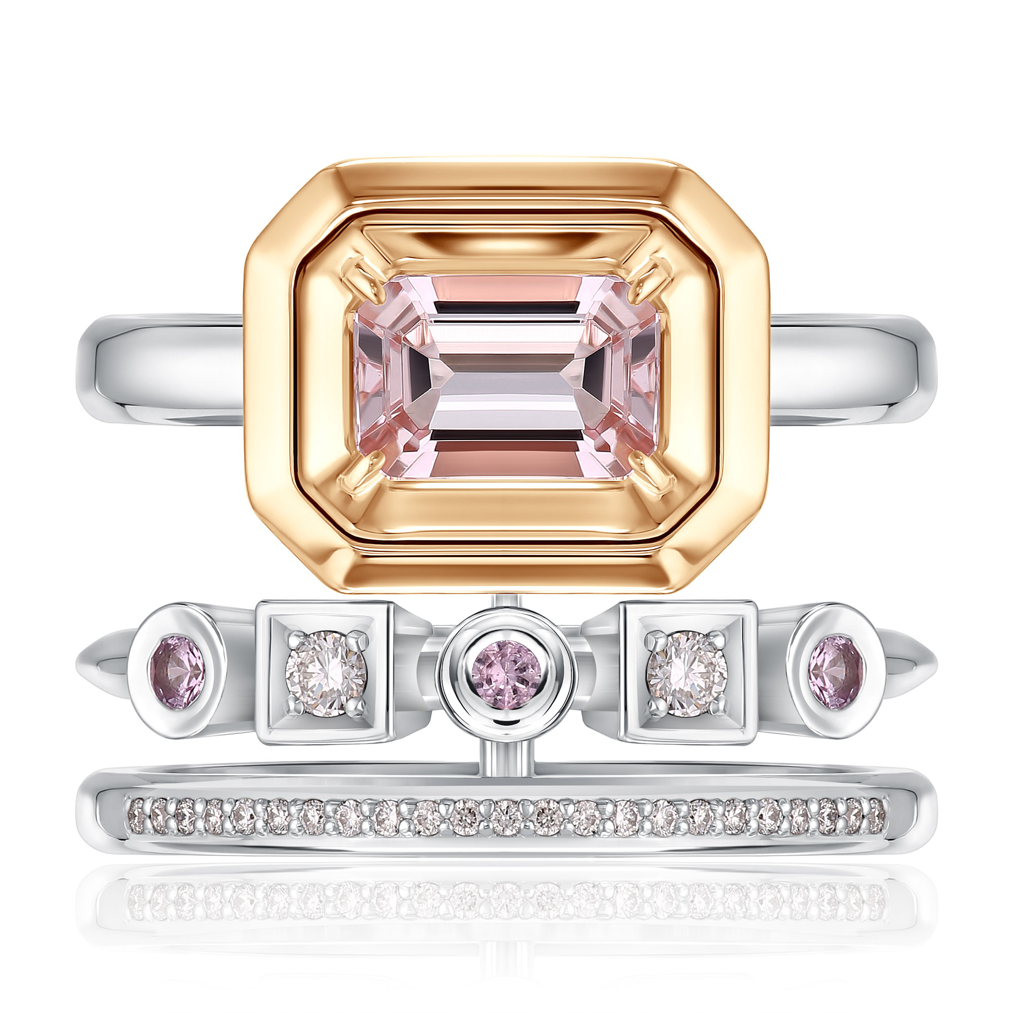 Кольцо из белого золота с морганитом, сапфирами и бриллиантами
