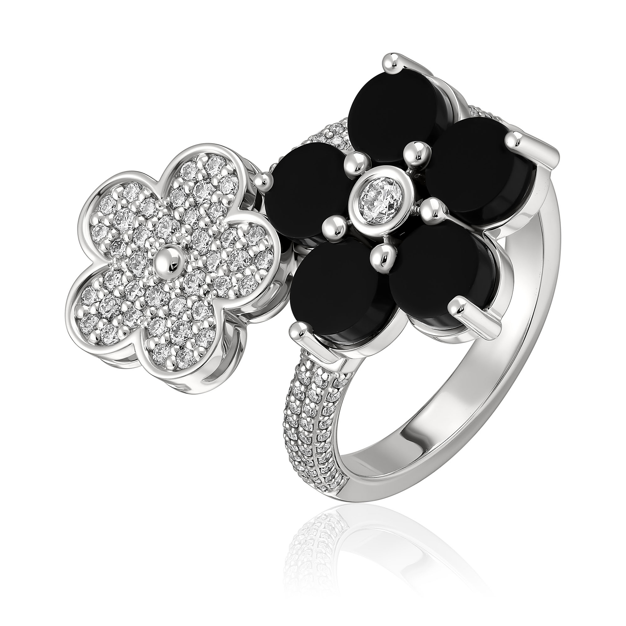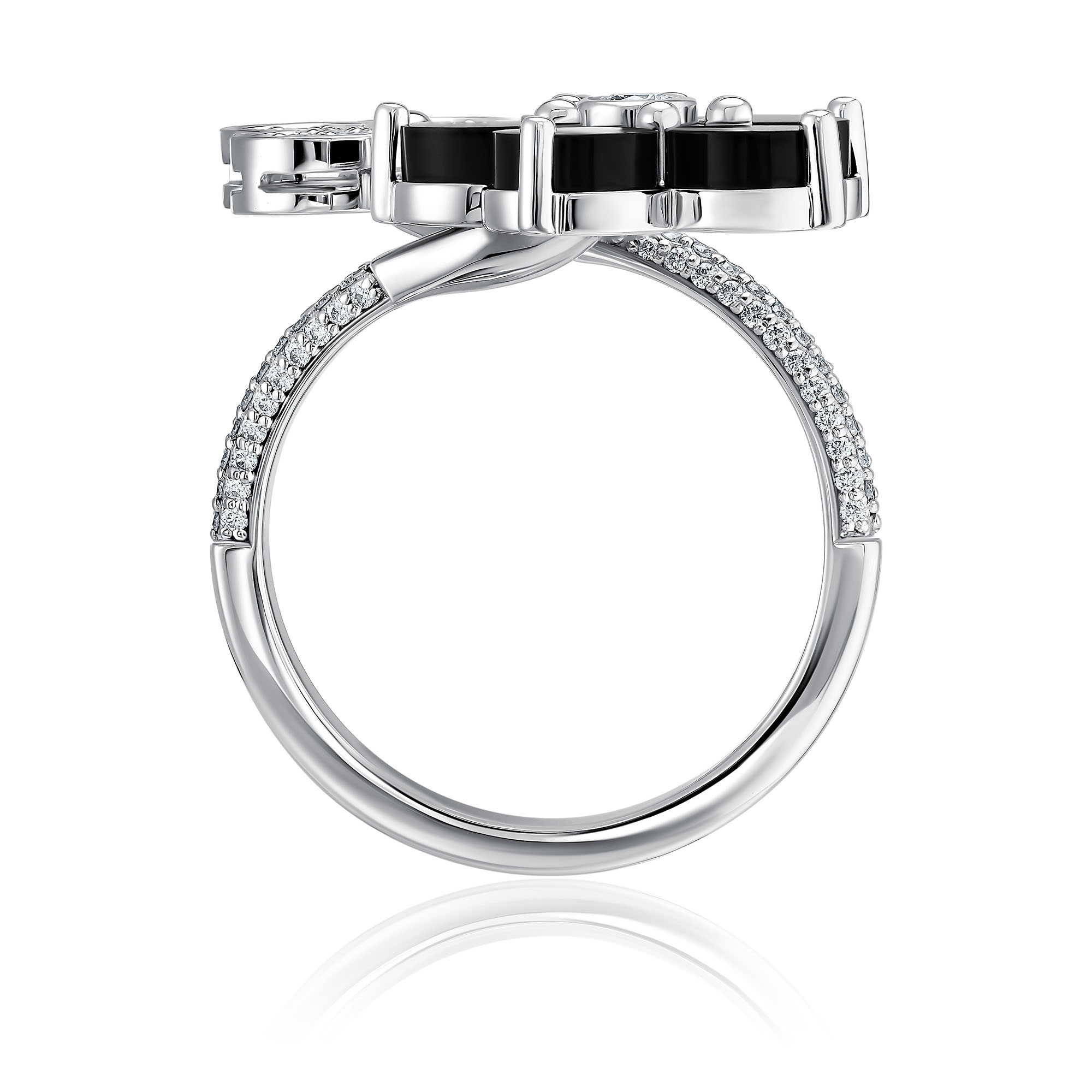 Кольцо из белого золота с ониксом и бриллиантами