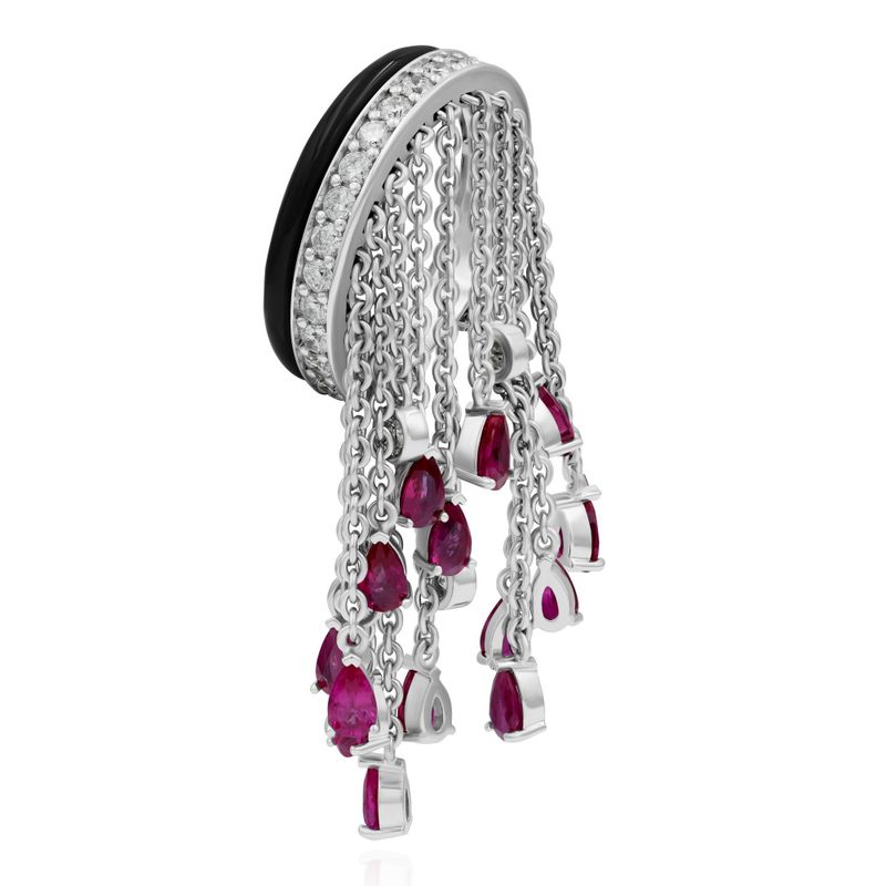 Кольцо из белого золота с рубинами и бриллиантами