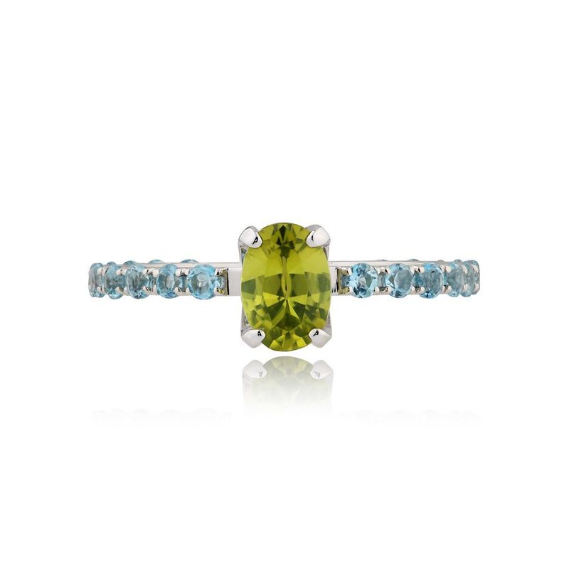 Кольцо из белого золота с топазами и хризолитом