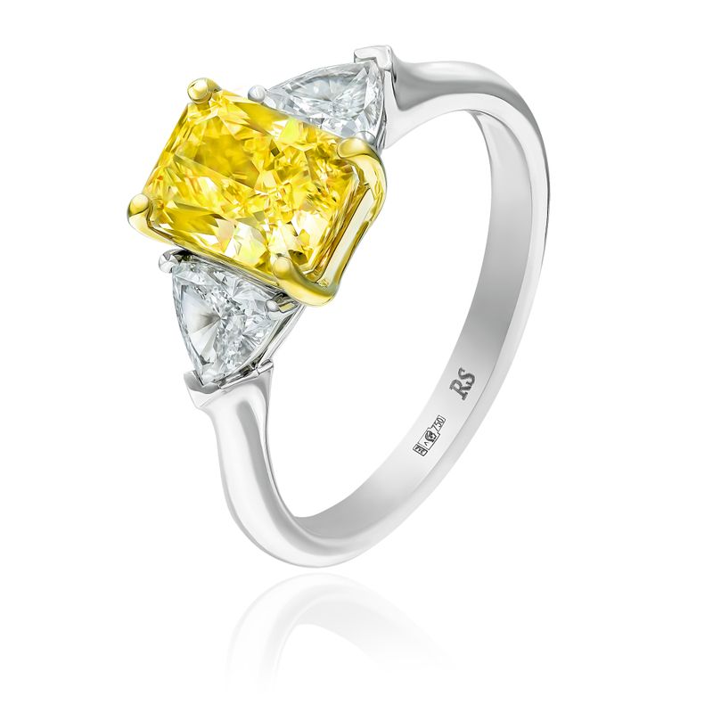 Кольцо из белого золота с желтым бриллиантом 2.08 ct