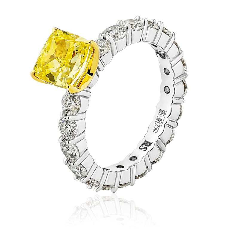 Кольцо из белого золота с желтым бриллиантом 2.11 ct