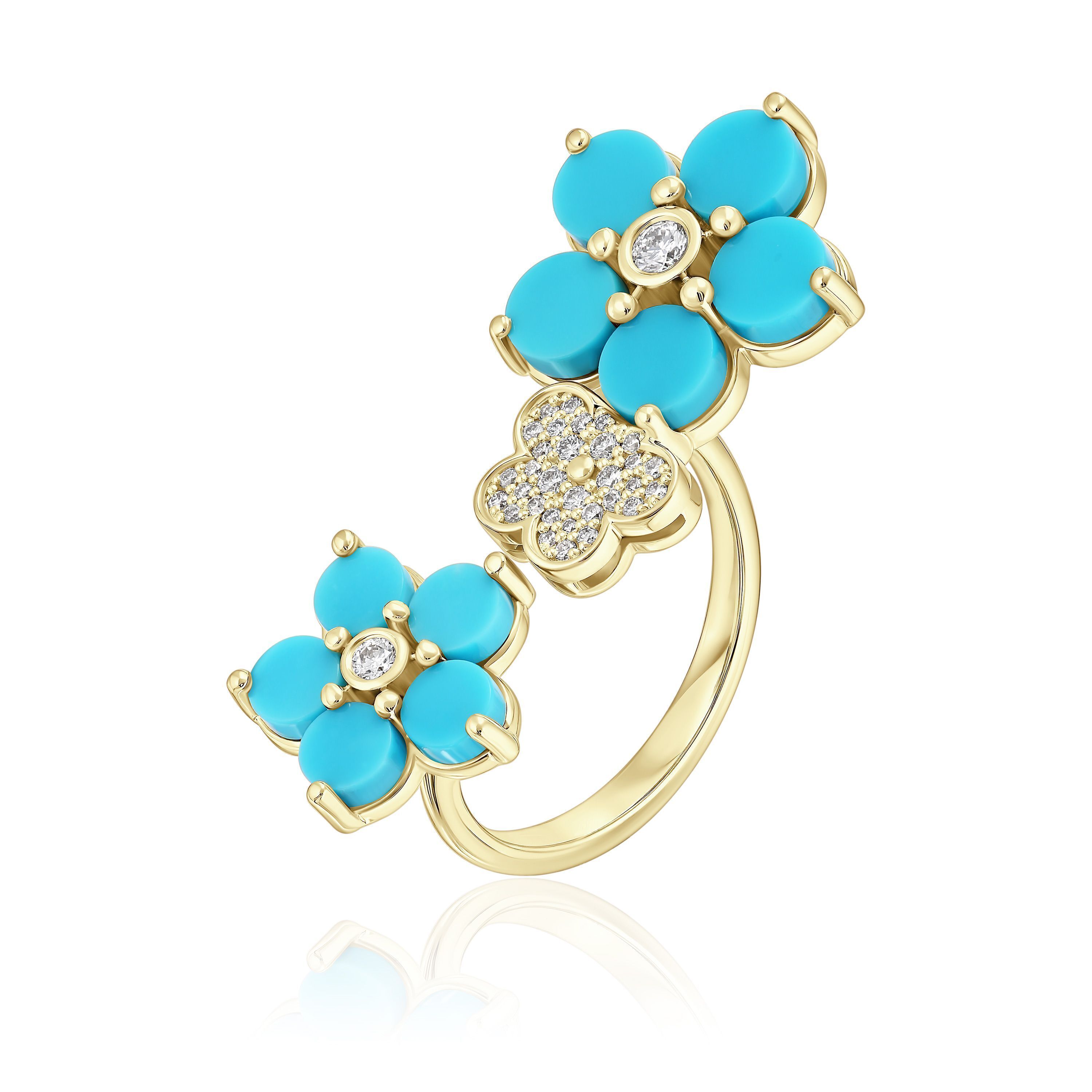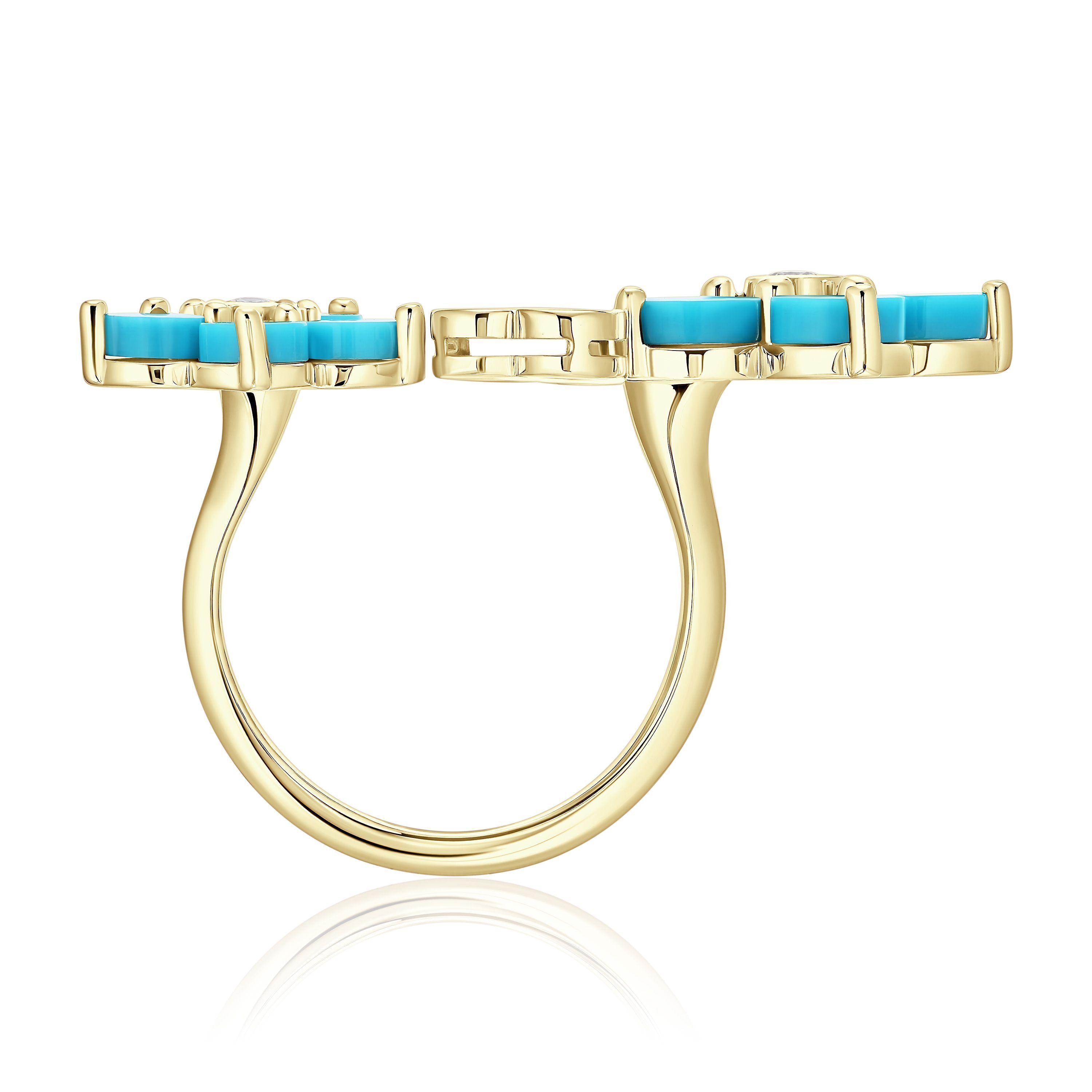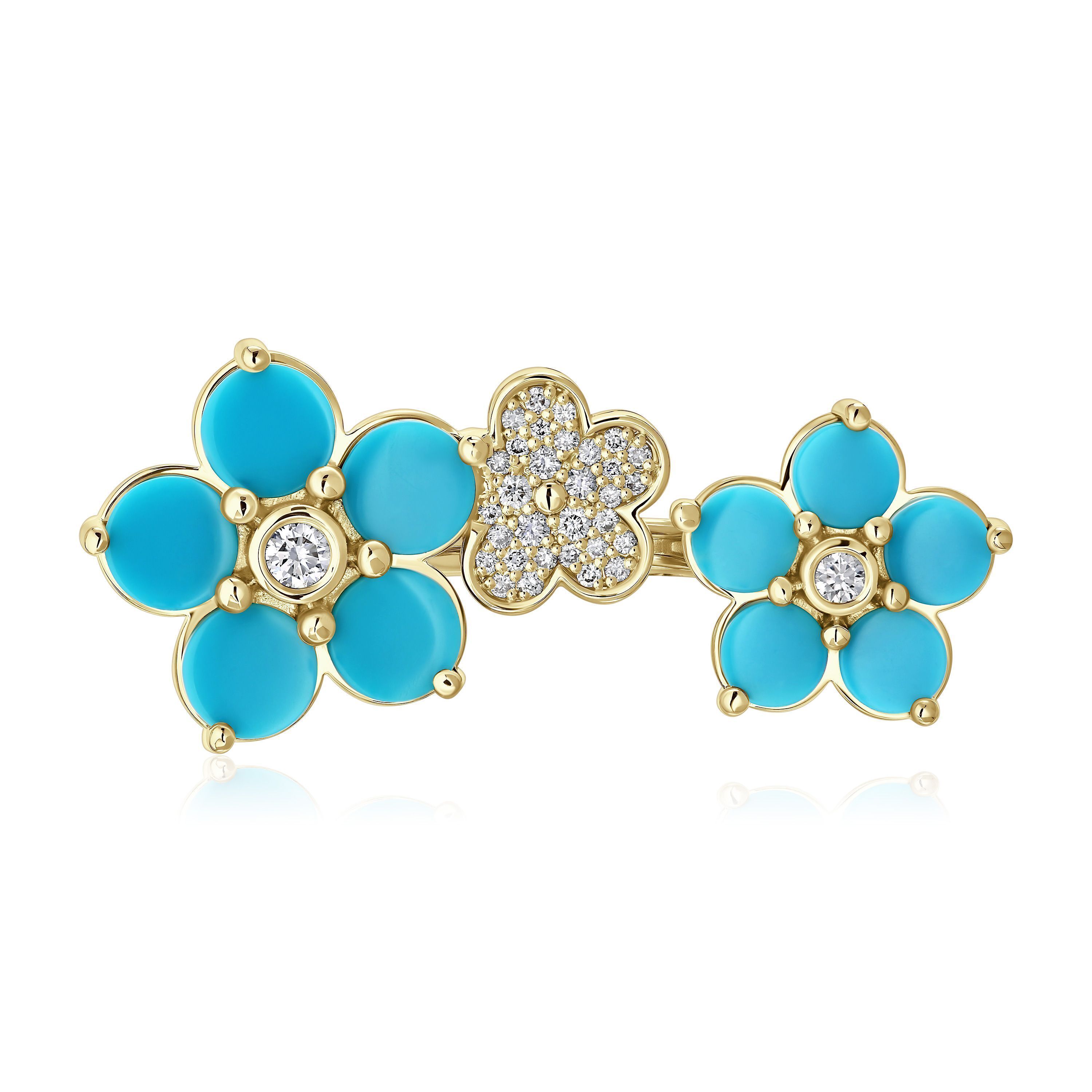Кольцо из желтого золота с бирюзой и бриллиантами