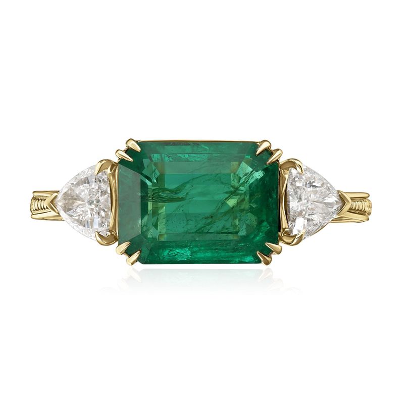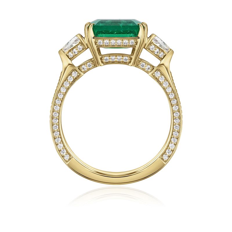 Кольцо из желтого золота с бриллиантами и изумрудом 3.81 ct