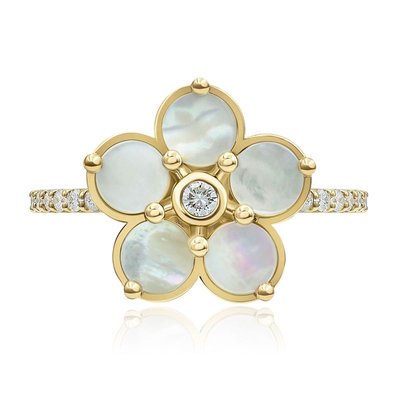 Кольцо из желтого золота с бриллиантами и перламутром