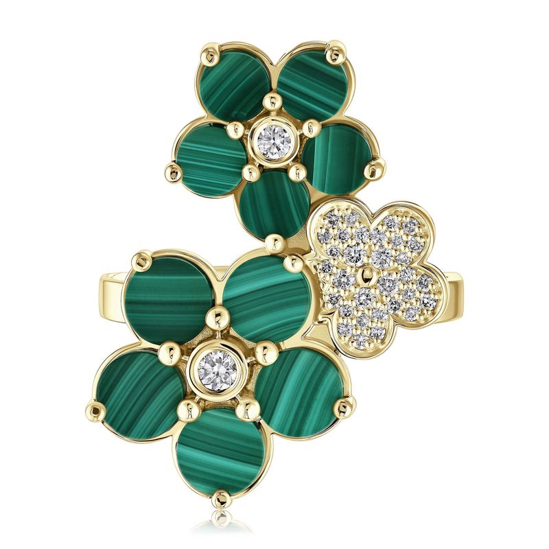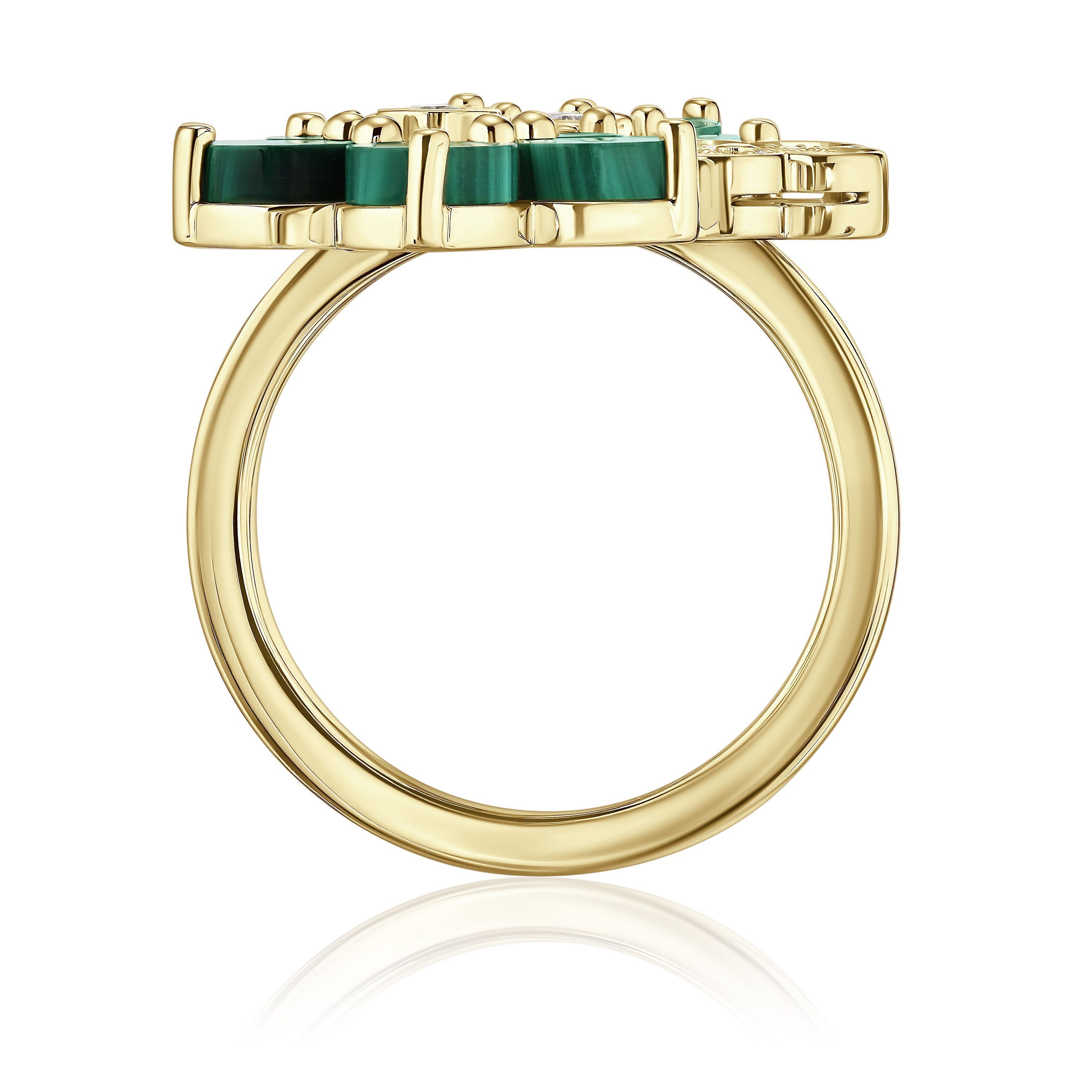 Кольцо из желтого золота с малахитом и бриллиантами