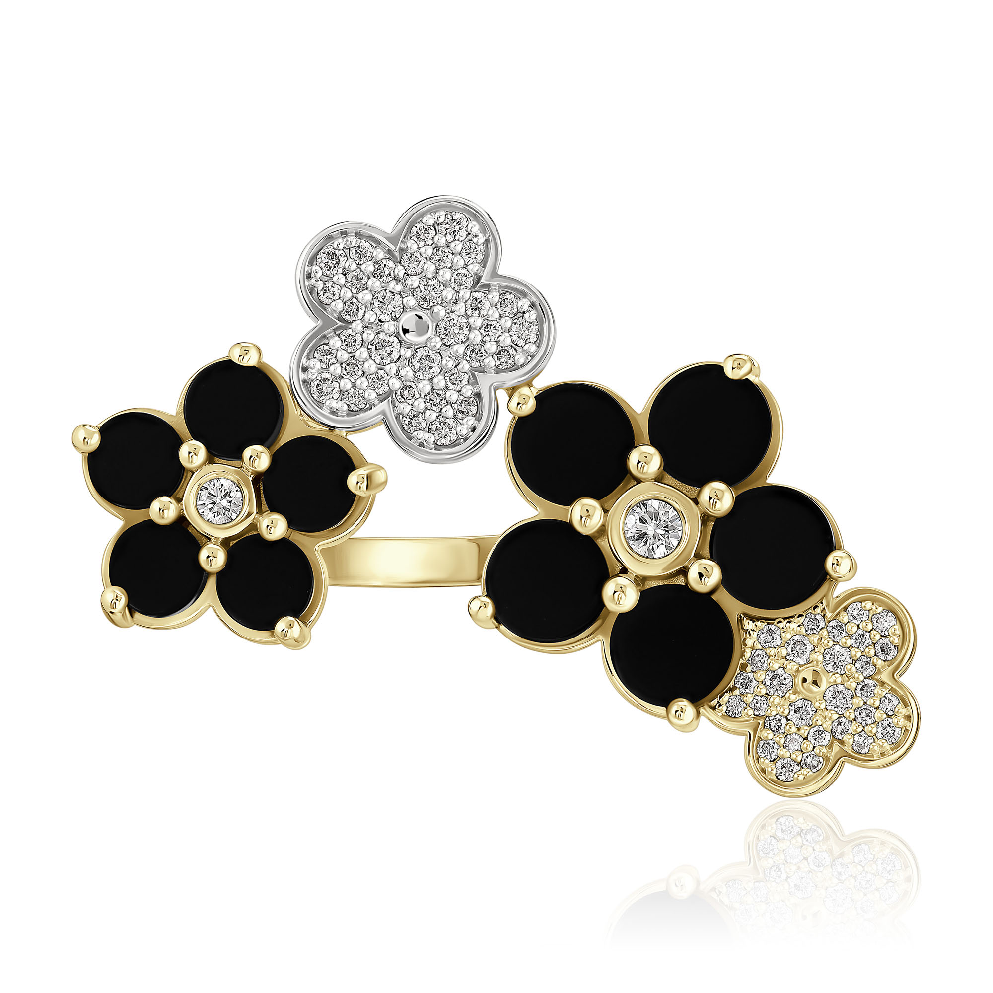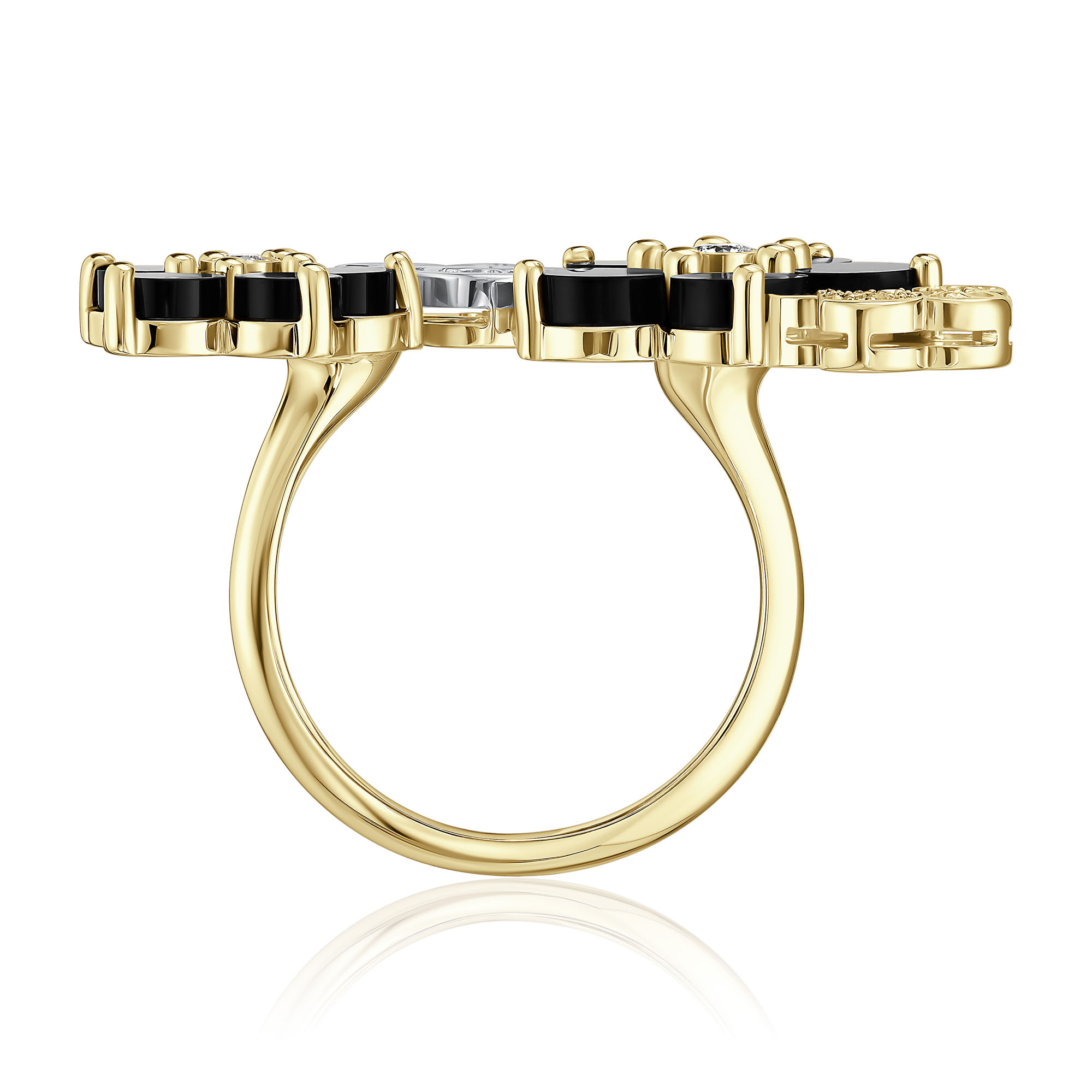 Кольцо из желтого золота с ониксом и бриллиантами