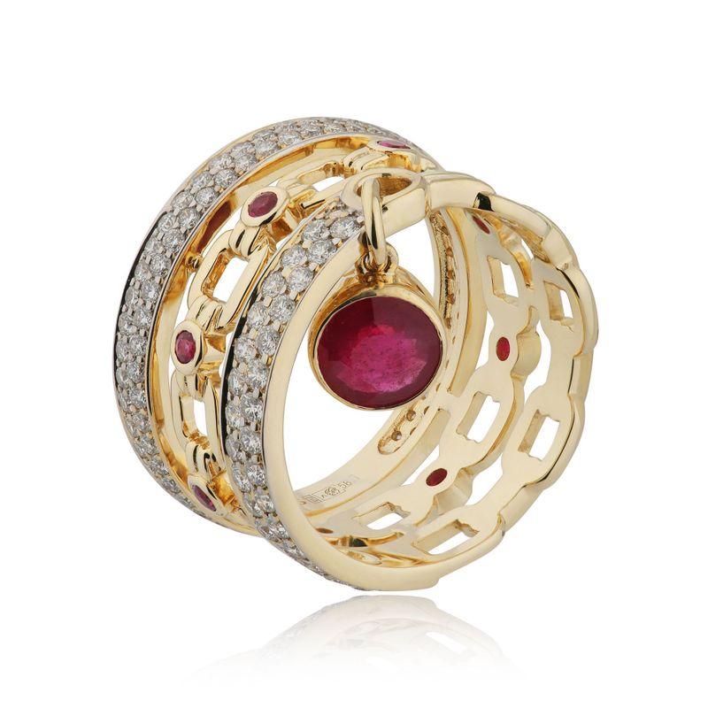 Кольцо из желтого золота с рубином 1.07 ct и бриллиантами
