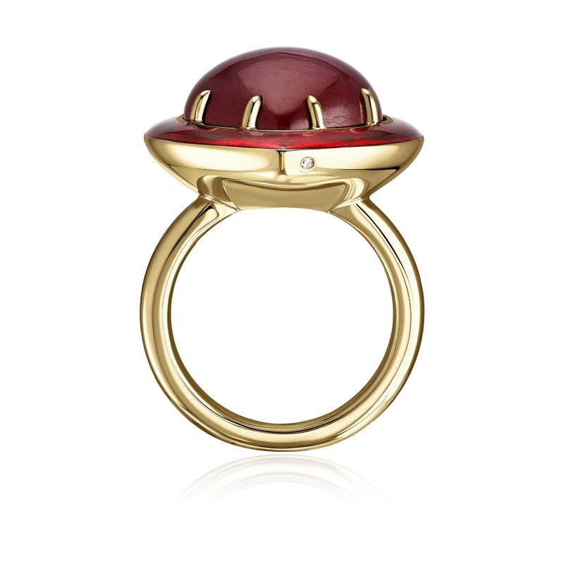 Кольцо из желтого золота с рубином 16.26 ct и бриллиантом