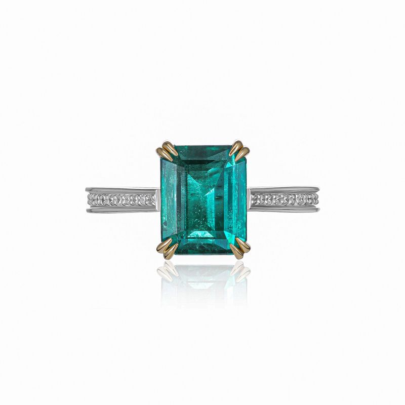 Кольцо с бриллиантами и изумрудом 3.24 ct