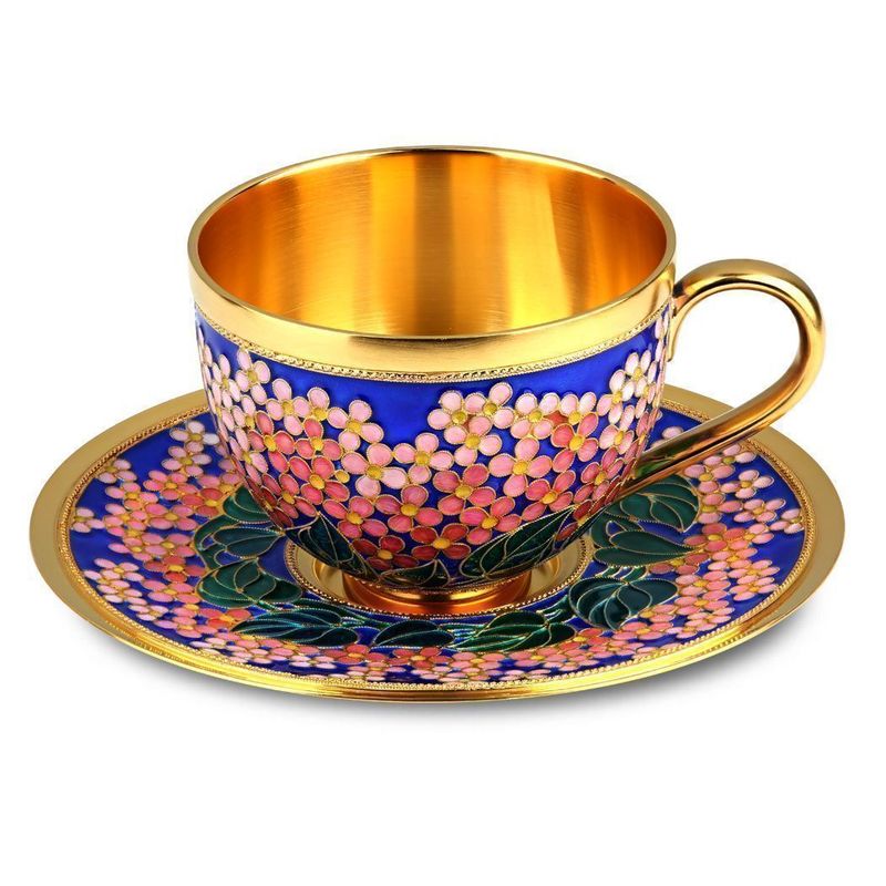Набор чашка с блюдцем «Сирень.Вечер» из серебра