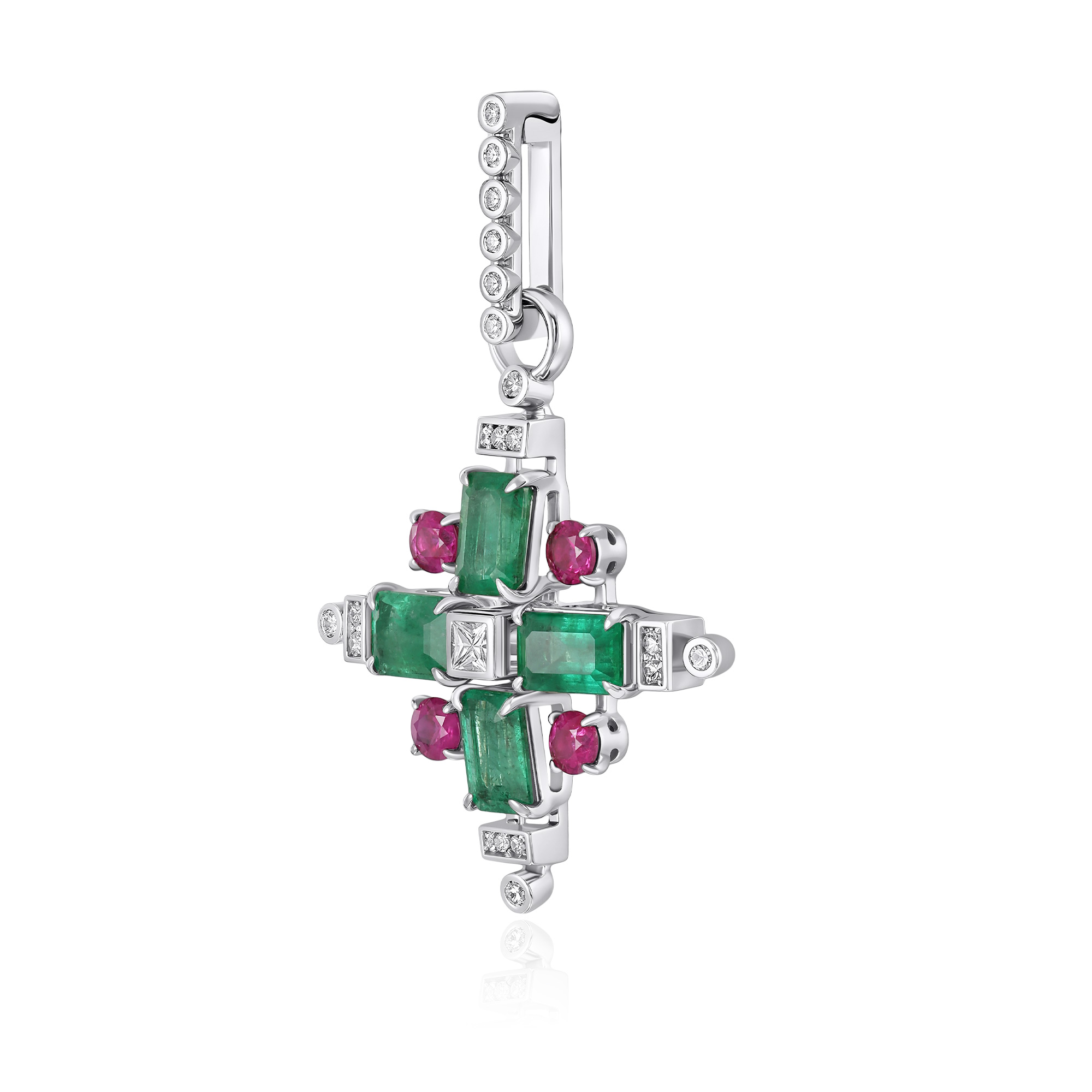 Подвеска из белого золота с изумрудами, рубинами и бриллиантами