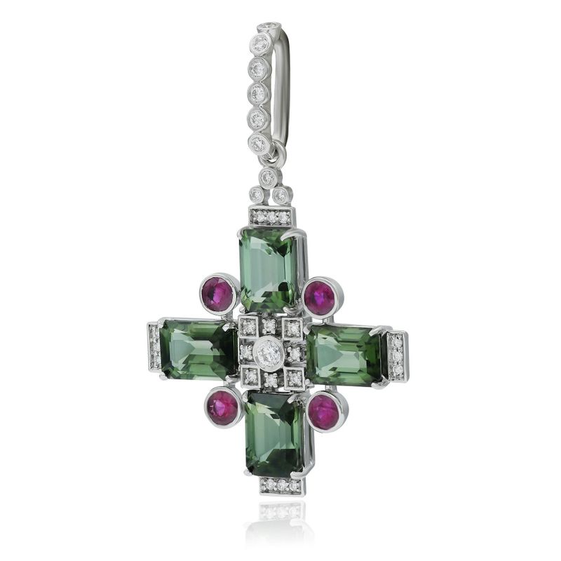 Подвеска из белого золота с рубинами, турмалинами и бриллиантами