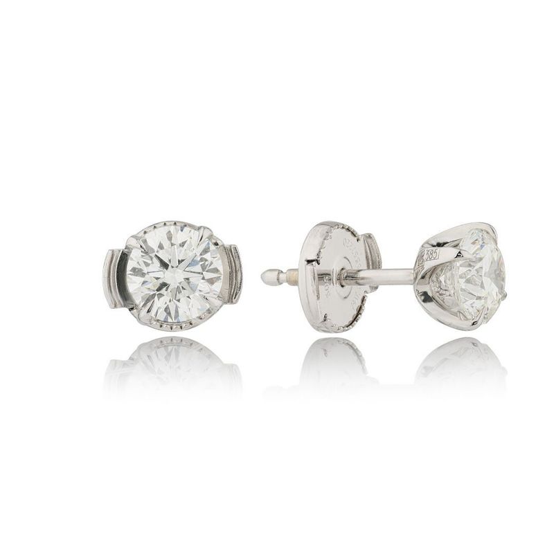 Пусеты из белого золота с бриллиантами 1.1 ct