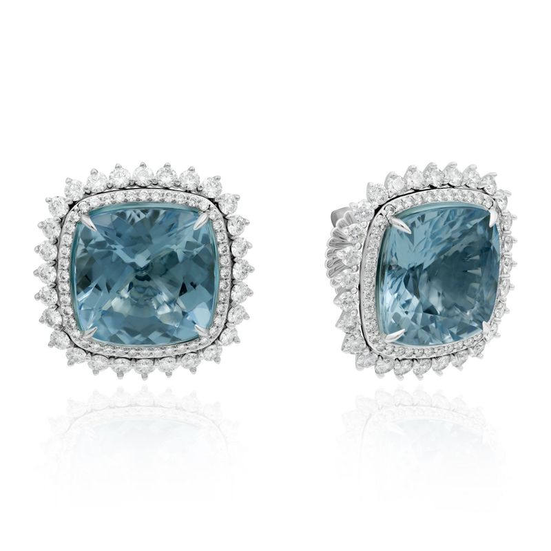 Пусеты из белого золота с бриллиантами и аквамаринами 13.8 ct