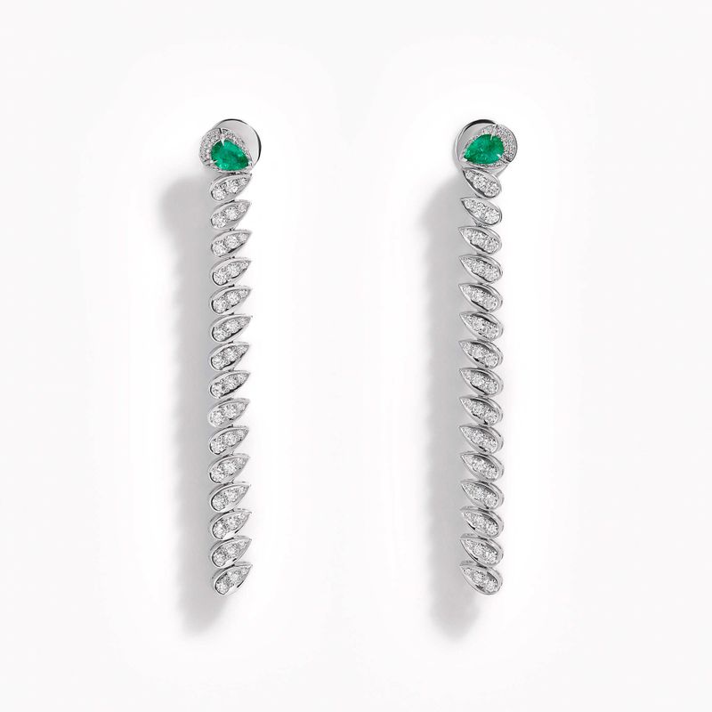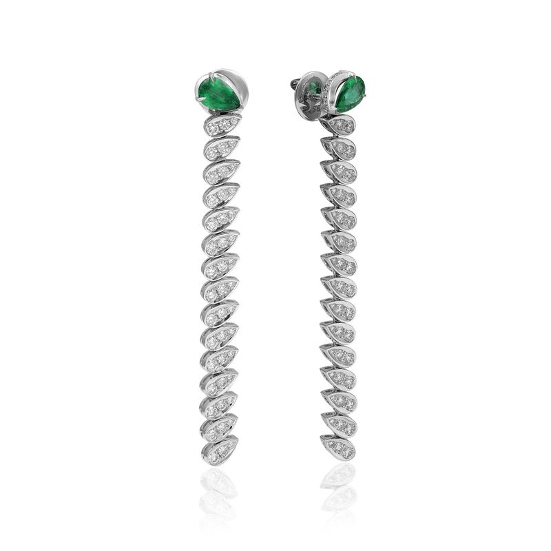 Пусеты из белого золота с изумрудами 1.14 ct и бриллиантами