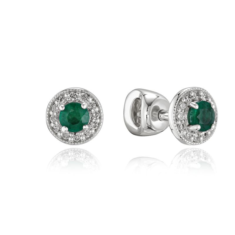 Бриллиант - Количество: 24,Вес: 0.116 ct. Изумруд - Количество: 2,Вес: 0.44 ct.