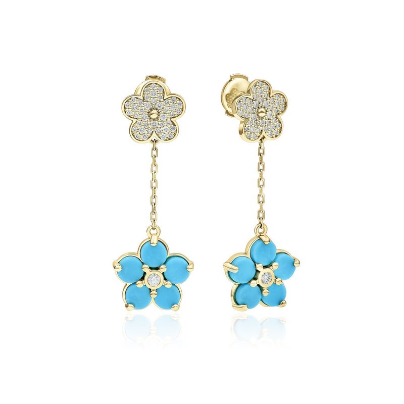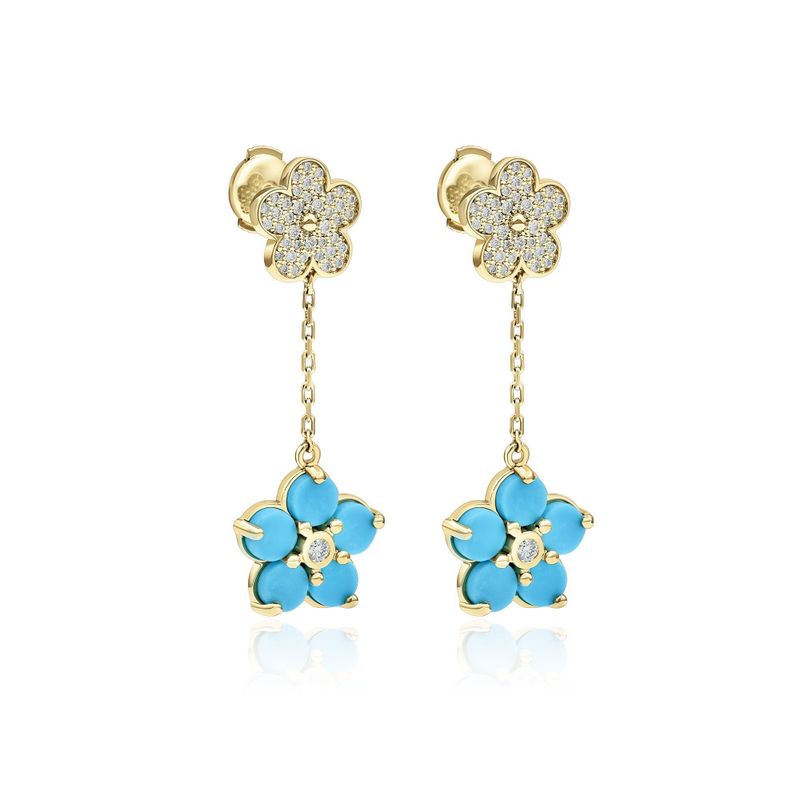 Пусеты из желтого золота с бирюзой и бриллиантами