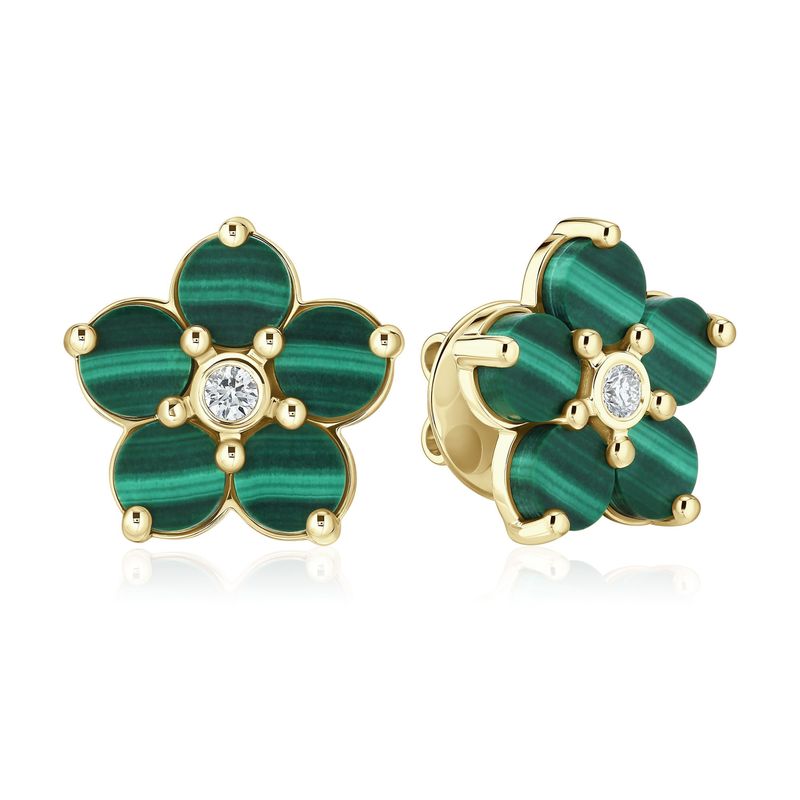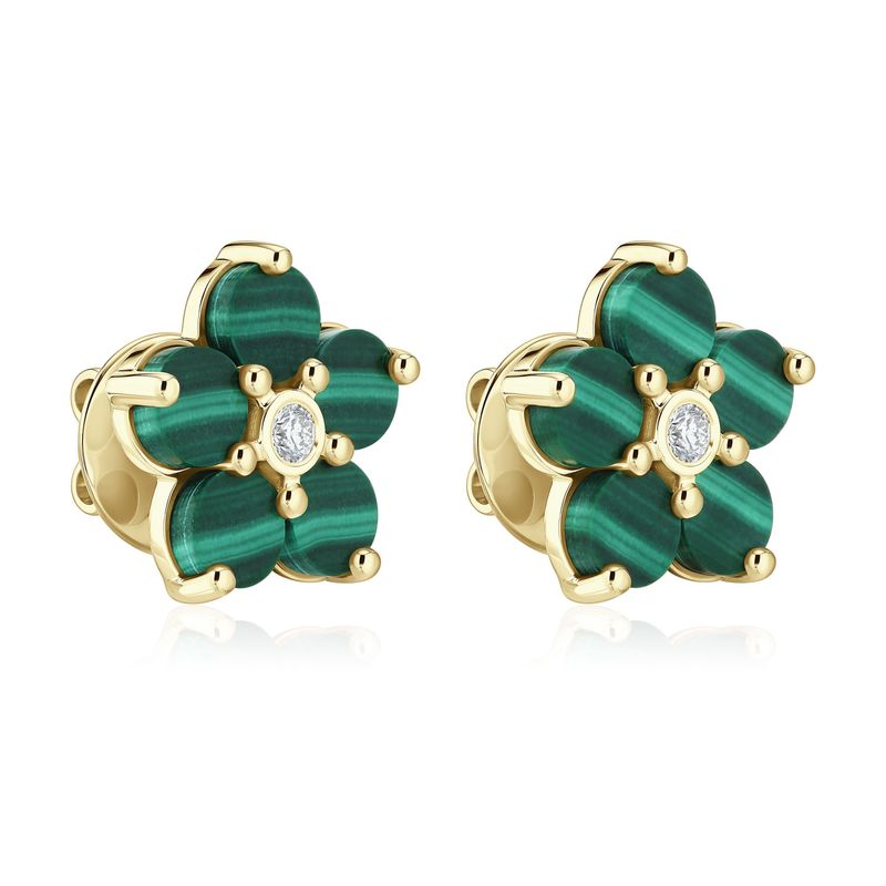 Бриллиант - Количество: 2,Вес: 0.13 ct. Малахит - Количество: 10,Вес: 1.296 ct.