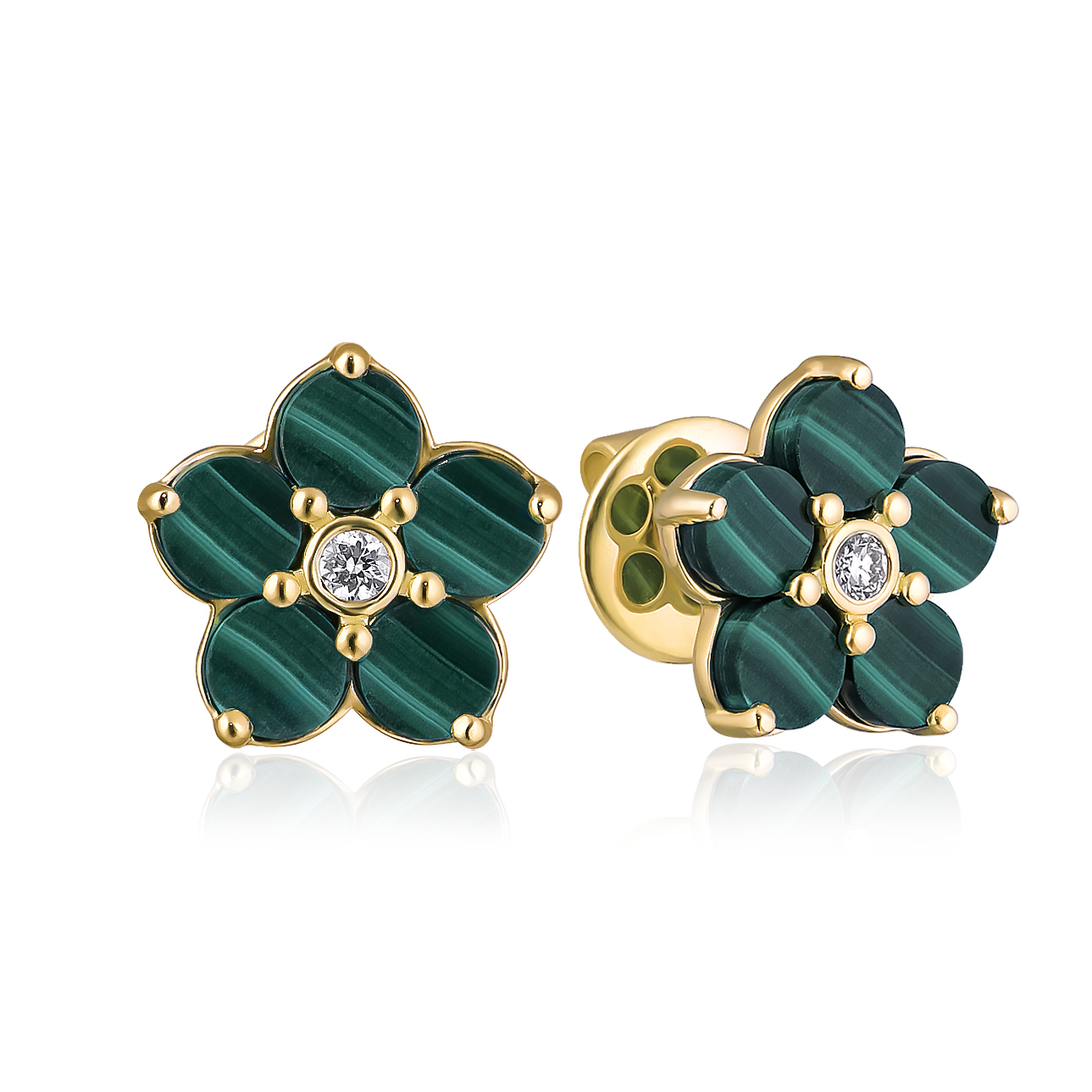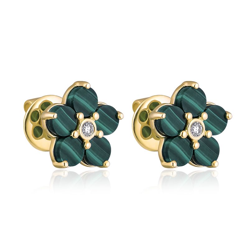 Пусеты из желтого золота с малахитом и бриллиантами