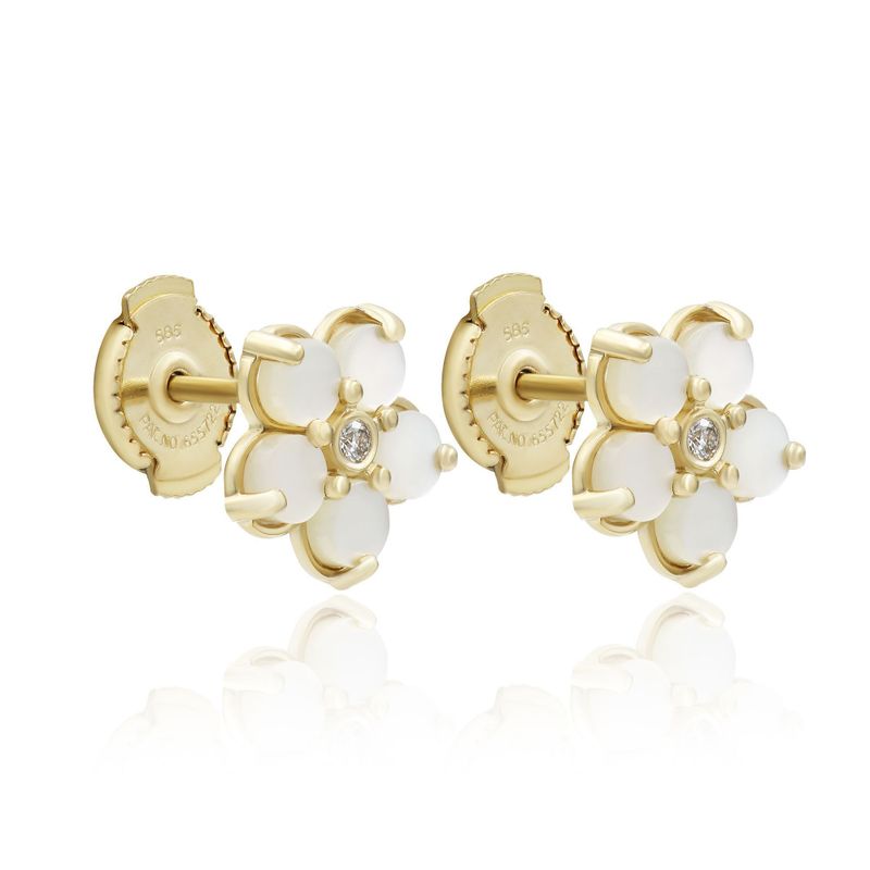 Бриллиант - Количество: 2,Вес: 0.03 ct. Перламутр - Количество: 10,Вес: 0.21 ct.