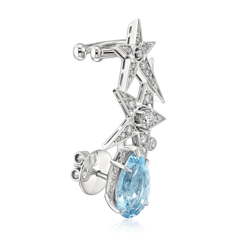 Серьга кафф из белого золота с аквамарином 3.43 ct и бриллиантами