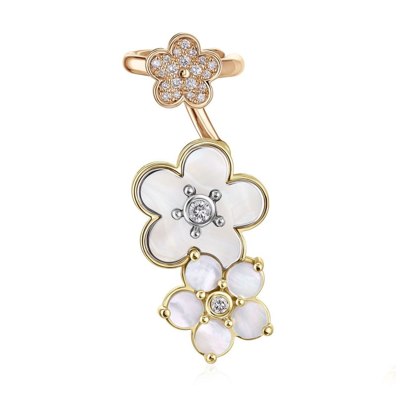 Серьга кафф из желтого золота с перламутром и бриллиантами