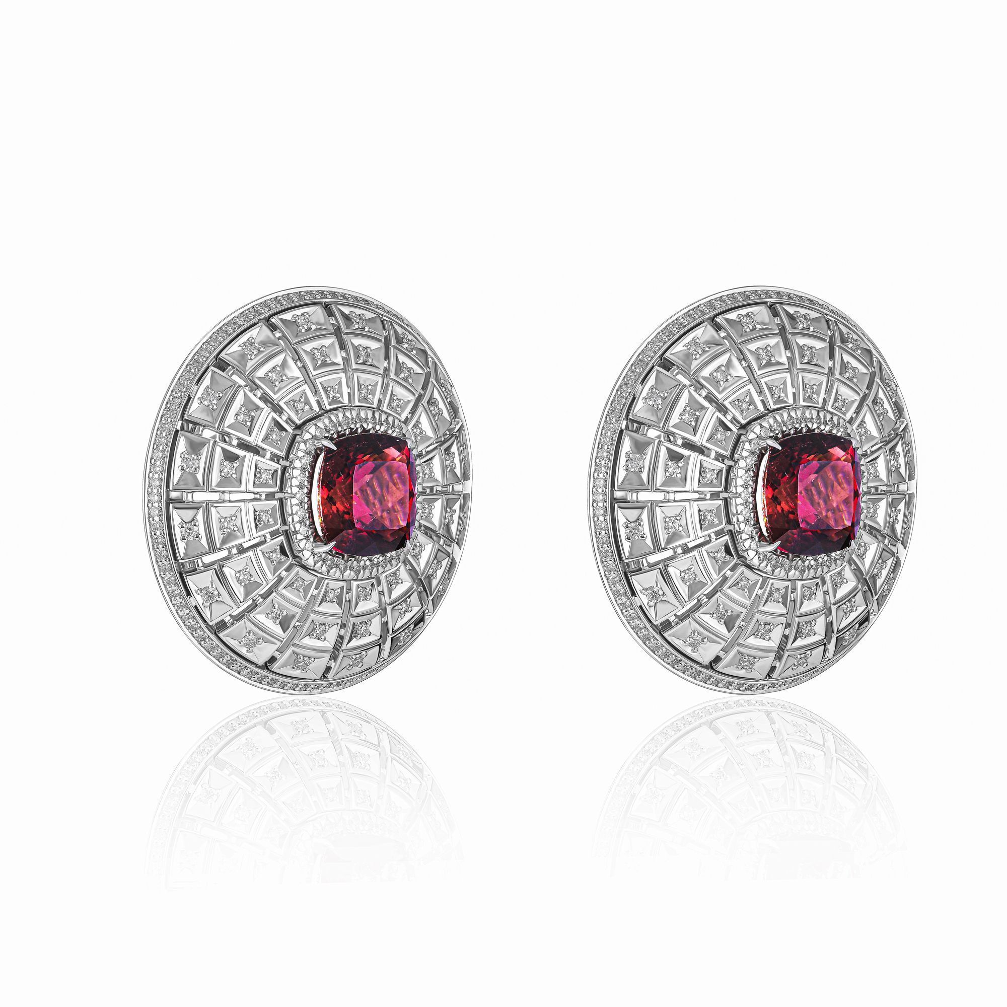 Серьги из белого золота с бриллиантами и турмалинами 8.45 ct