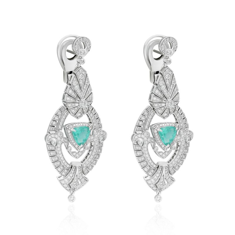 Серьги из белого золота с турмалинами параиба 4.73 ct и бриллиантами