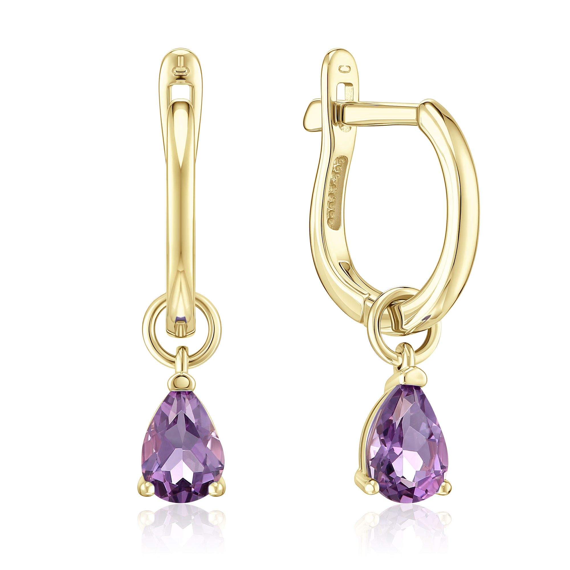 Серьги из желтого золота с аметистами