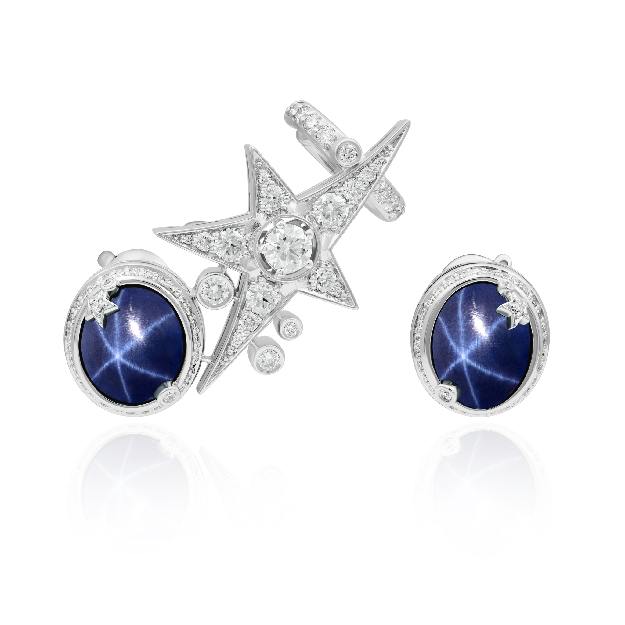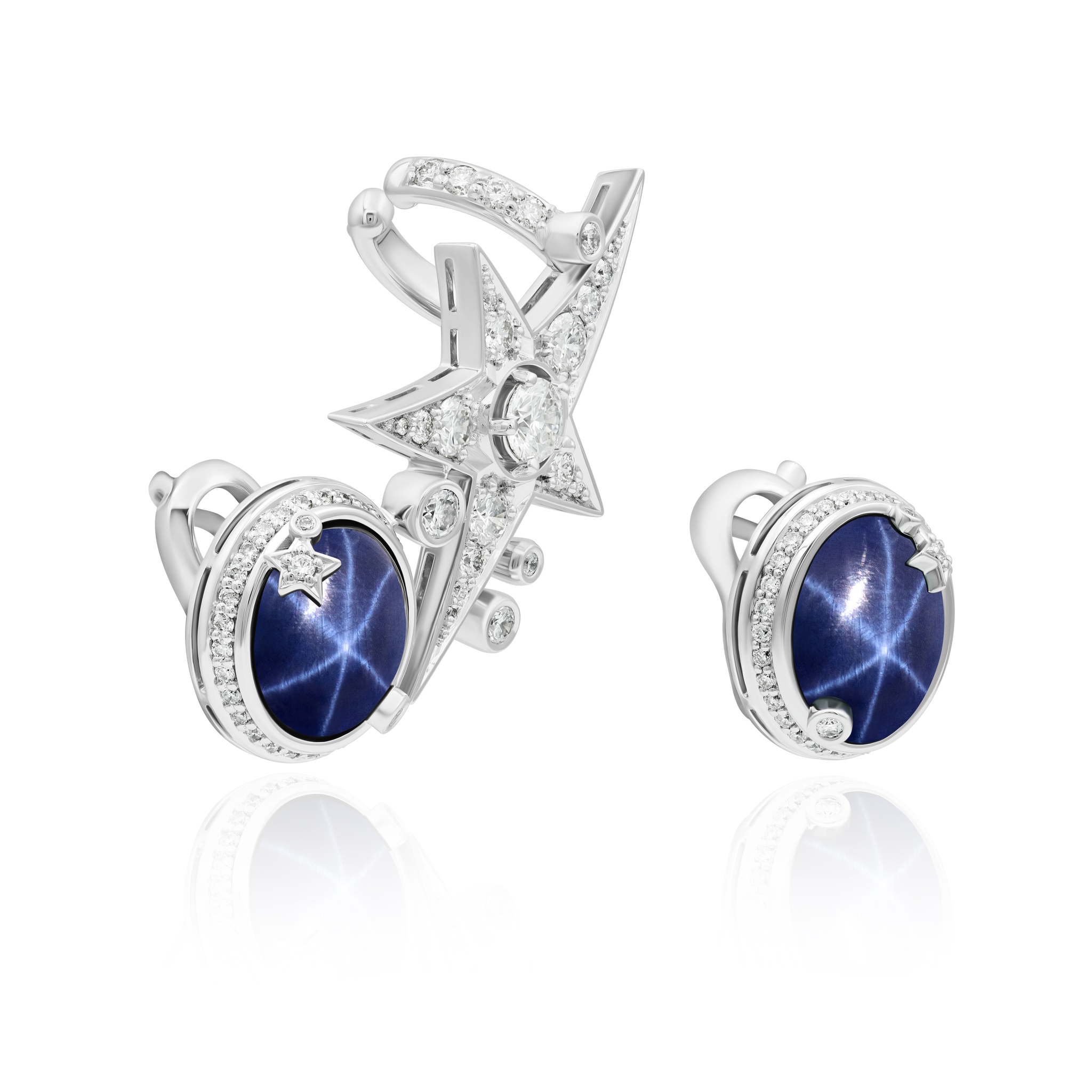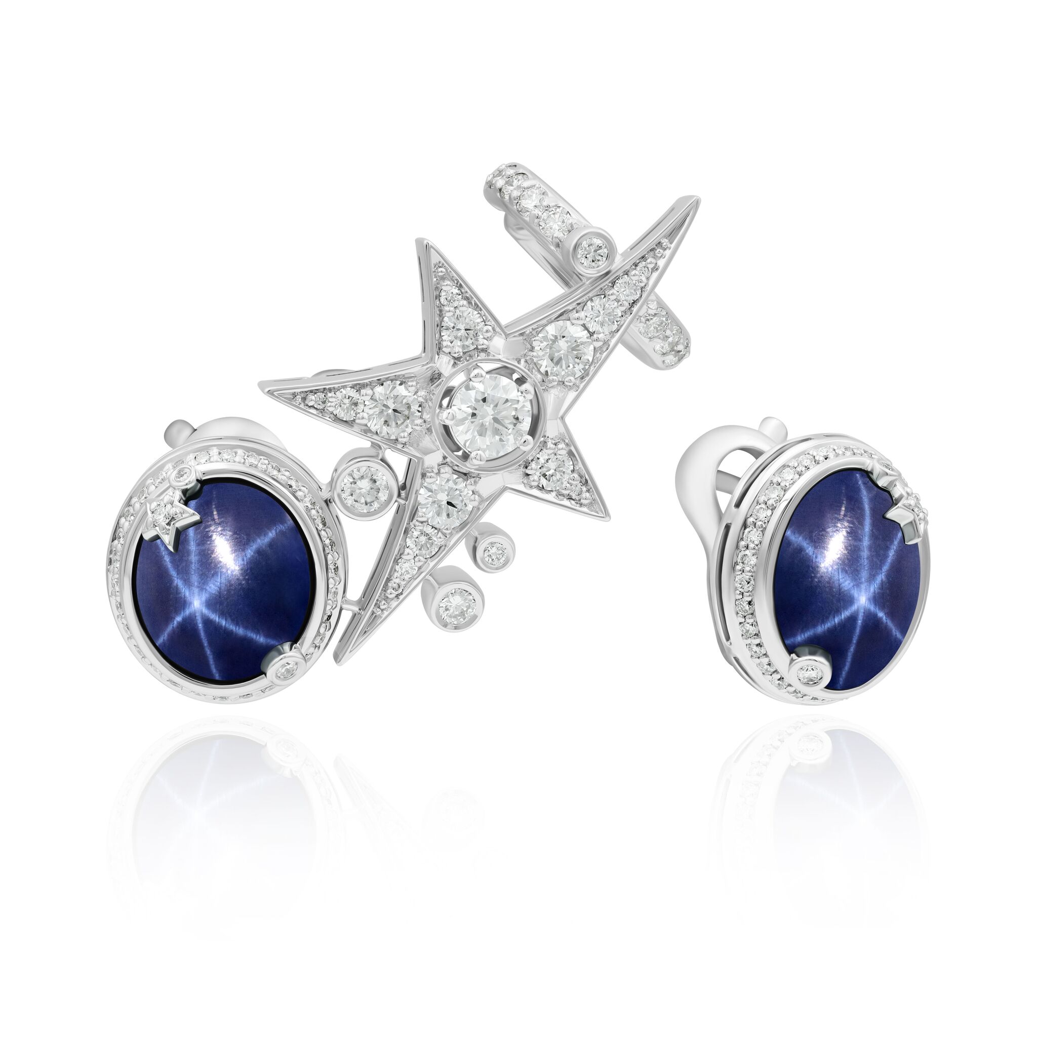 Серьги каффы из белого золота с сапфирами и бриллиантами
