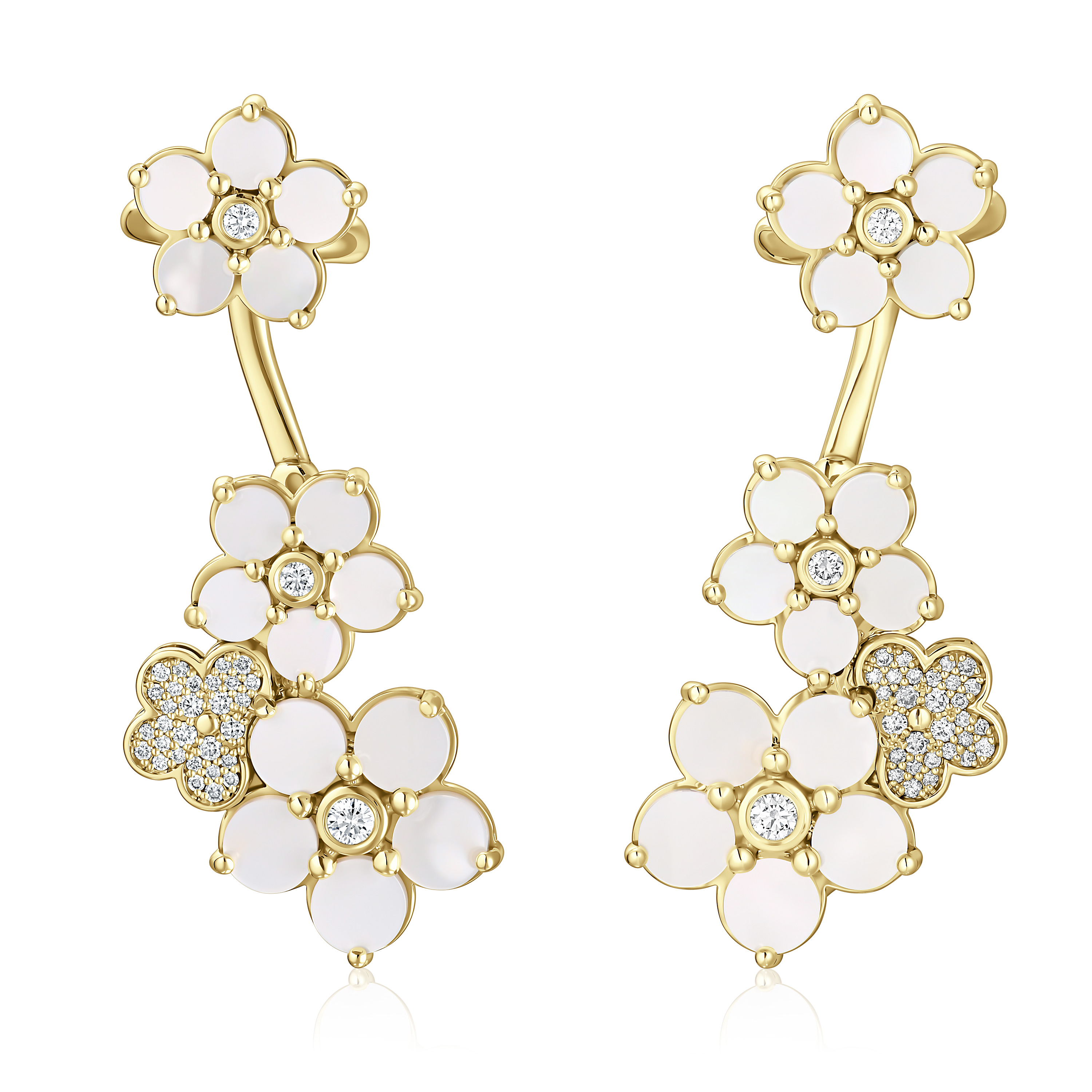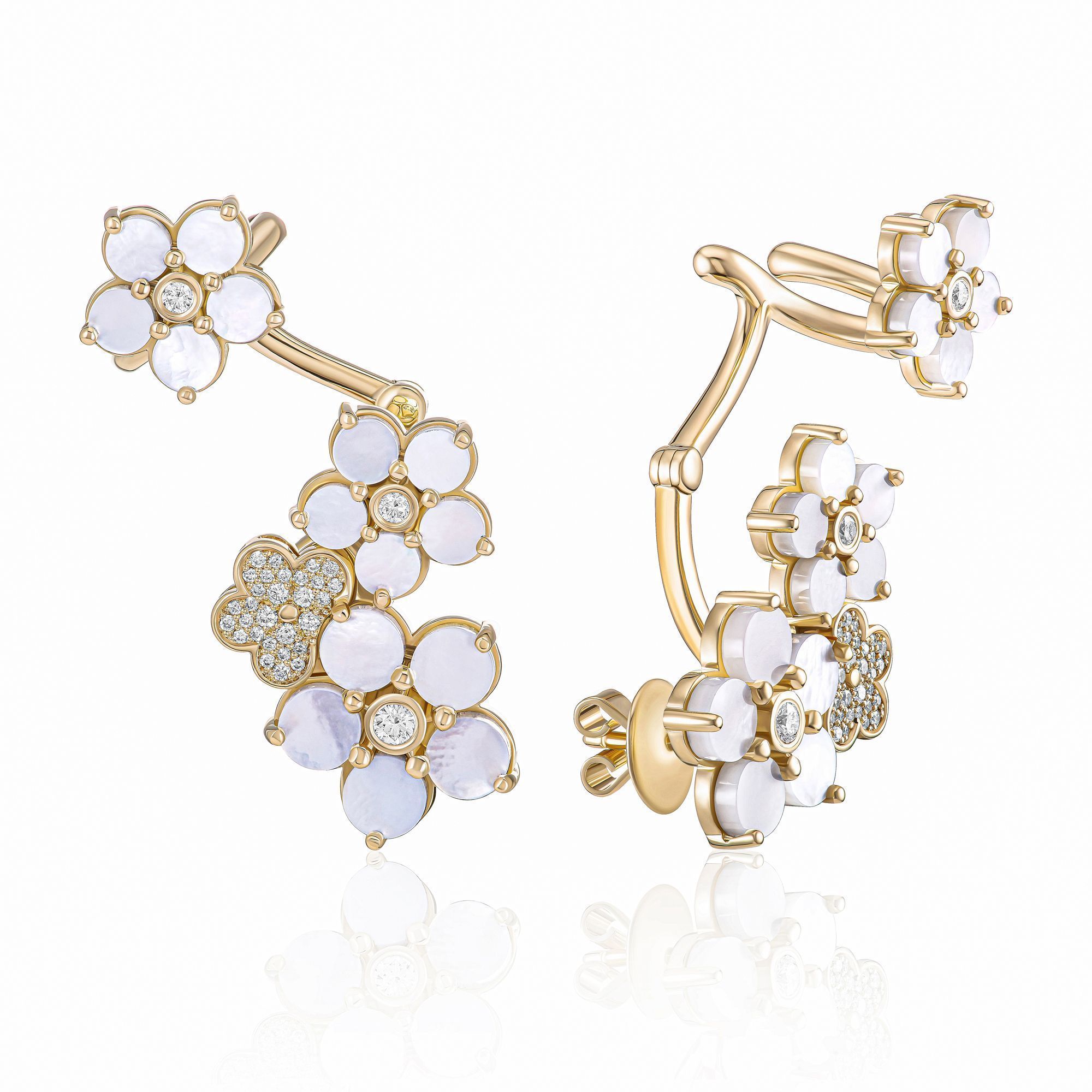 Серьги каффы из желтого золота с перламутром и бриллиантами