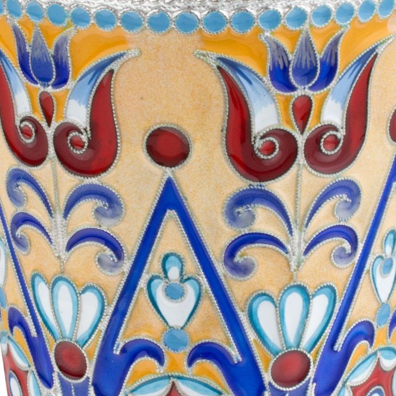 Изысканная коллекция посуды, состоящая из чайного набора, бокалов и стопок, выполненных в эмалево-филигранной технике, отражает роскошь и индивидуальность. Утонченность и элегантность, серебро и золото, изящество и блеск - переплетение двух сил рождает богатство жизни, наслаждение и удовольствие.