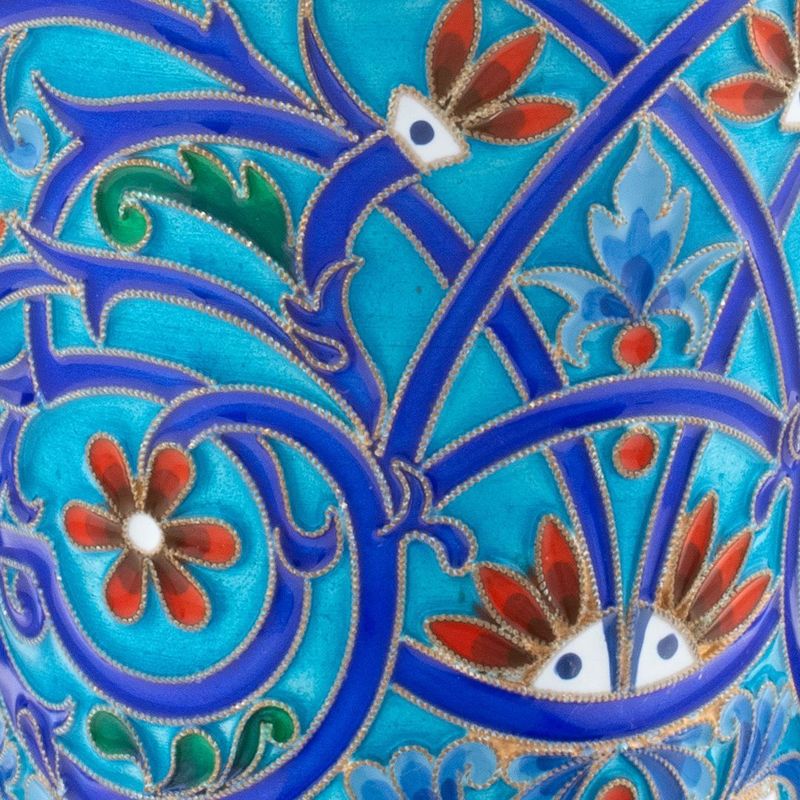 Изысканная коллекция посуды, состоящая из чайного набора, бокалов и стопок, выполненных в эмалево-филигранной технике, отражает роскошь и индивидуальность. Утонченность и элегантность, серебро и золото, изящество и блеск - переплетение двух сил рождает богатство жизни, наслаждение и удовольствие.