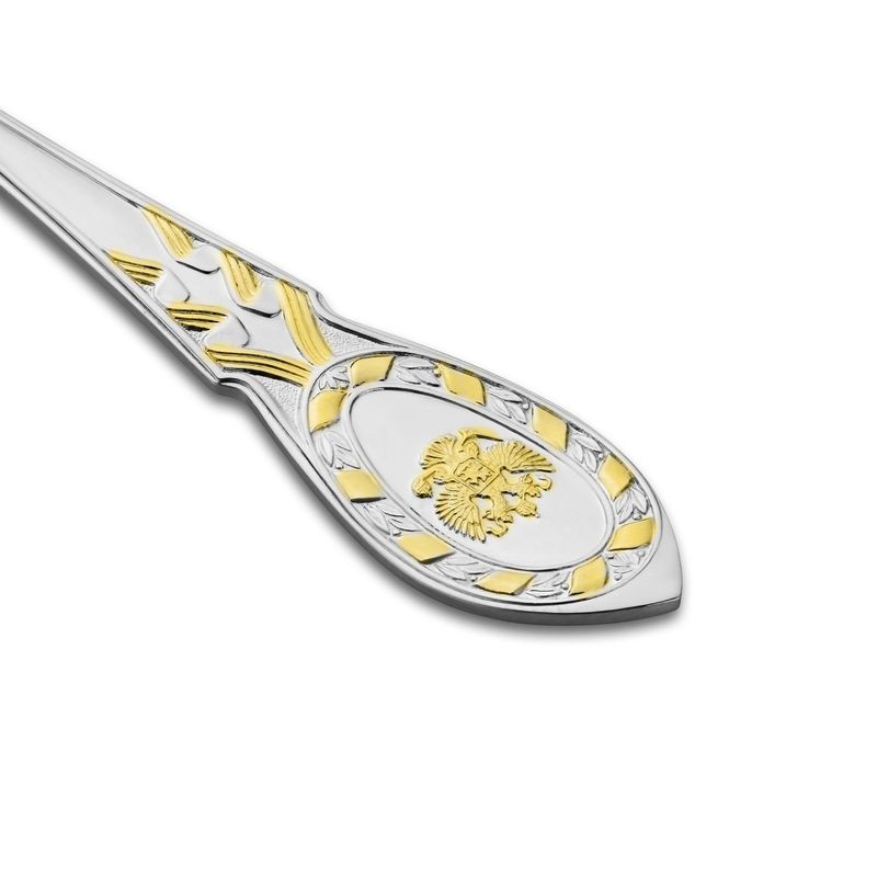В основу дизайна столового серебра из набора «Государственный» легли изделия поставщика Двора Его Императорского Величества купца 3-й гильдии Павла Сазикова. Предметы сервировки стола, декорированные гербом России, подаются на приемах Московского Кремля и Константиновского дворца в Стрельне.