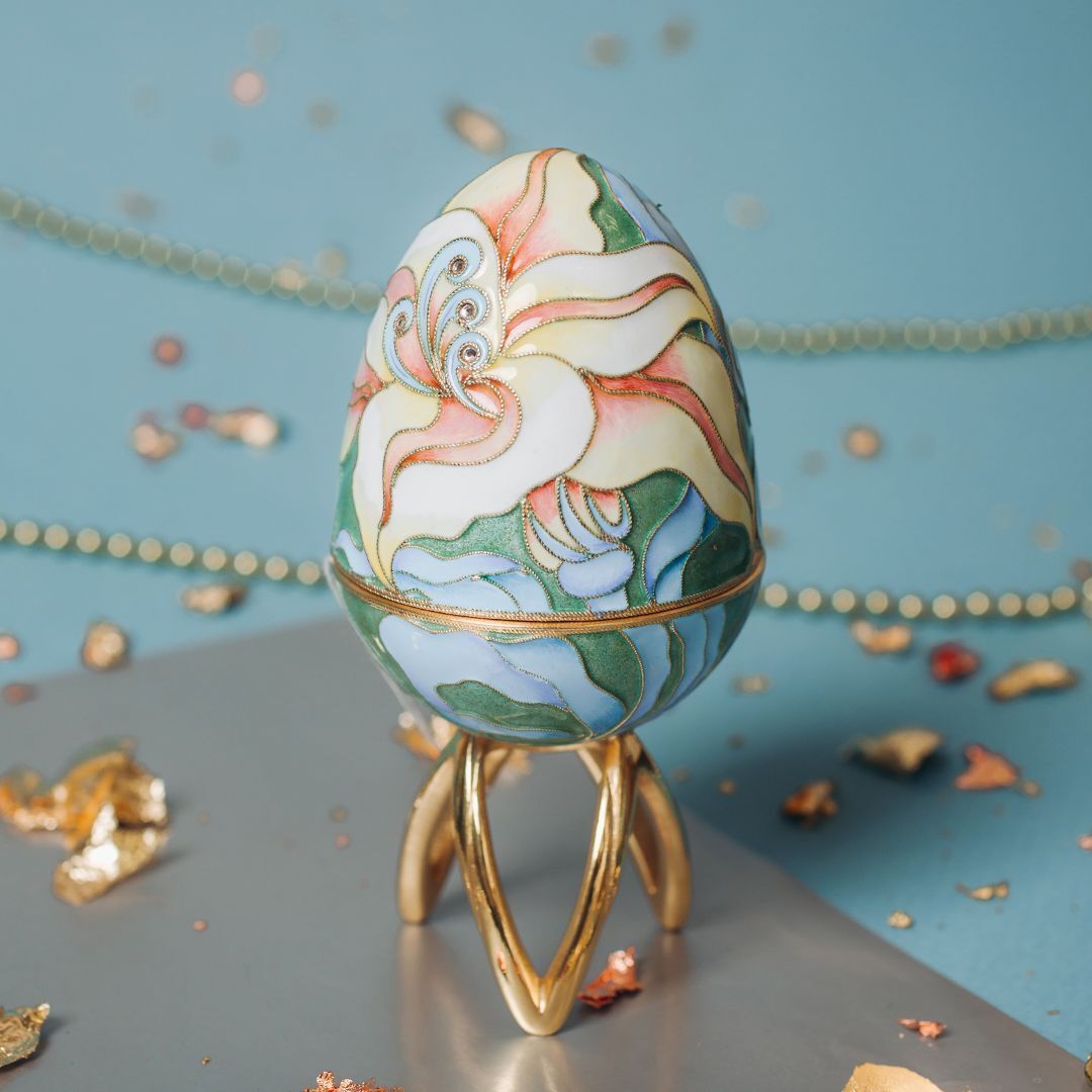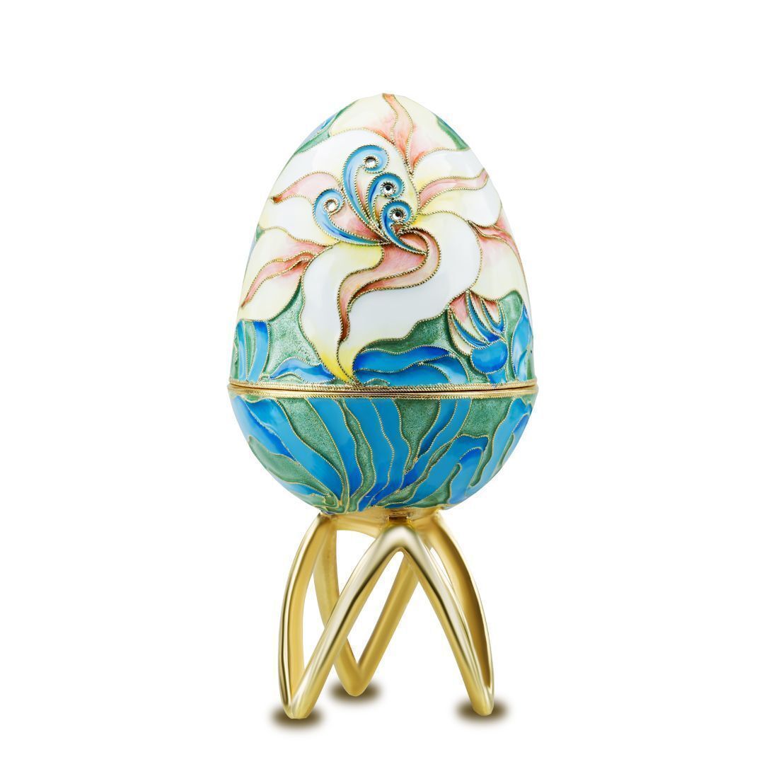 Яйцо-шкатулка «Лилия» из серебра с фианитом